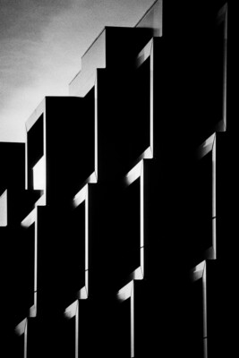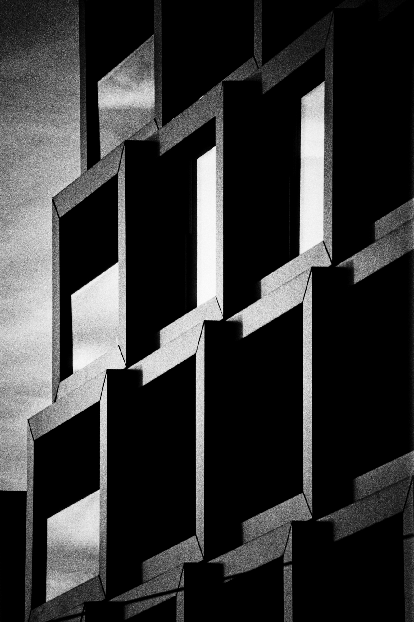 I FOCUS ON THE REPETITIVE CUBIC STRUCTURE, THE DEEP SHADOWS IT CREATES, AND THE WAY LIGHT DEFINES EACH EDGE OF THE FACADE.